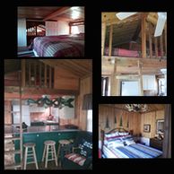 This three room cabin sleeps 2-6 people. There is a King bed in the bedroom, a Queen bed in the loft and a Full sleeper sofa