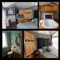 NEW IN April 2023. This unit has a two person hot tub located on the deck NO SOAP, NO FOOD, NO PETS in the tub. The cottage has a larger full size kitchen and larger bath with 2 sinks and lots of built in storage. It has a shower/mini half tub combo. The Living area has an entertainment center, walk out deck, dining area and private BBQ. The master bedroom has an adjustable SLEEP NUMBER queen size bed plus a sleeper sofa (not recommended for adults). Ramp access and central heating and air.