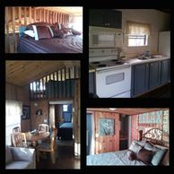 This Route 66 cabin is decorated in a 1970's retro theme complete with door beads and a lava lamp! This cabin sleeps 2-4 people with a Queen bed in the bedroom and a Full size sleeper sofa in the living room (not recommended for adults) Air conditioned.