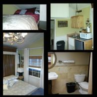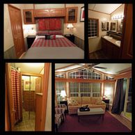 It sleeps 2-4 people with a Queen bed in the living area and a Queen bed in the 4' loft (no ADA access). The loft is open to the living area and is accessed via a staircase. This is the smallest of our units but it has the largest bathroom. The bathroom has transfer bars at the toilet and in the shower plus a fold down shower chair. There is a mini fridge, microwave and coffee maker (no stove). Wall heat and air. No Pets
